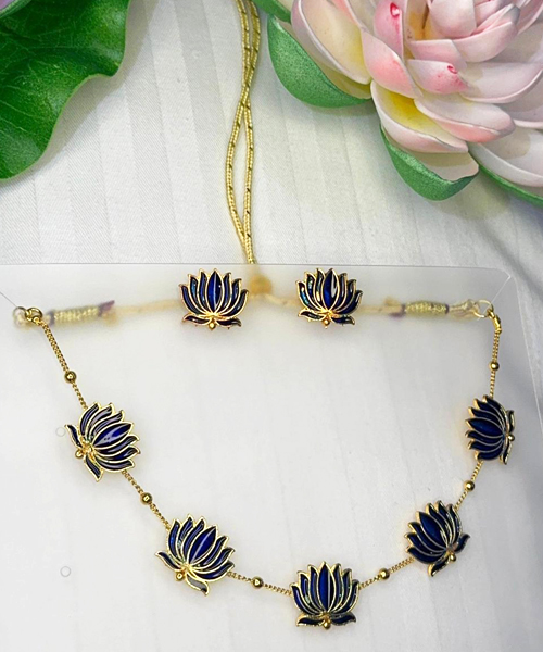 / Floral Necklace Set for Women & Girls Lotus chain Blue