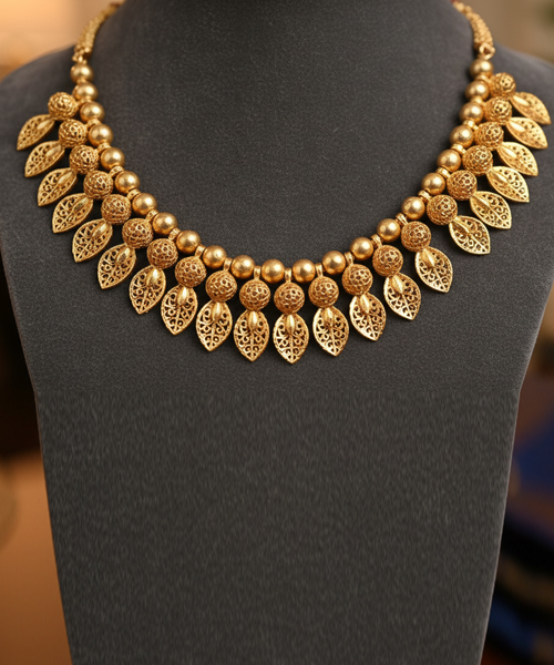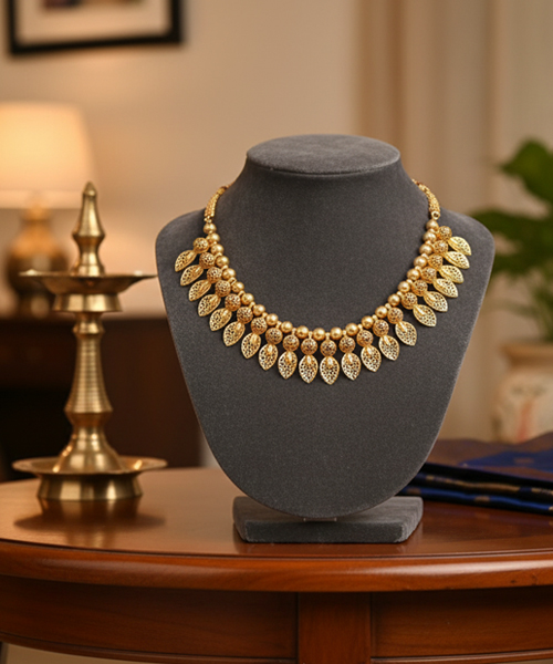 Gold Polished Antique Necklace With Adjustable Thread |Best For Bride, Bridemaids & Special Occasion quantity