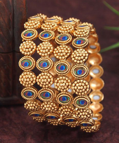 Peacock Designer Bangles Set Of 2 Gold-Plated Stone quantity