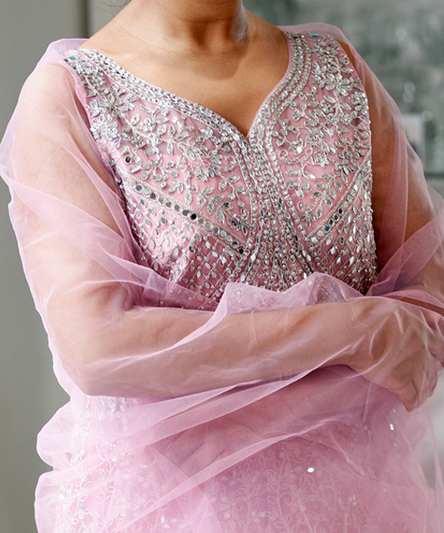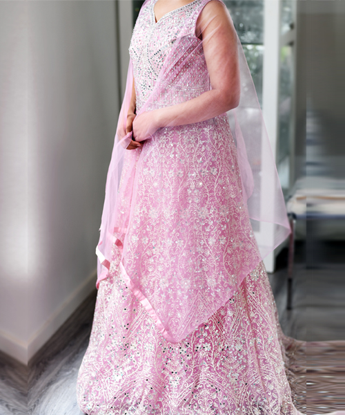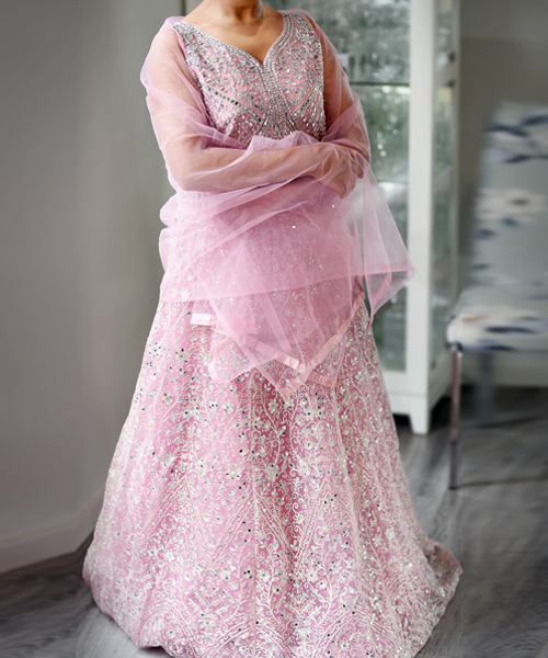 / Stitched Pink Net Lehenga with Sequins Embroidery